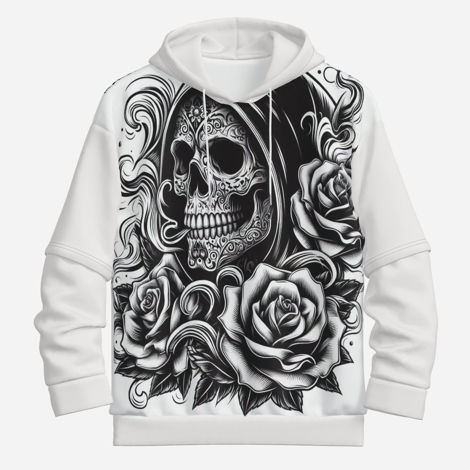 With its relaxed fit, the Men's Rose Of The Reaper -b Gothic Skull Tattoo Line Art Hoodie provides ultimate comfort without compromising on style. The adjustable drawstring hood allows you to customize your look, while the spacious kangaroo pocket is perfect for keeping your hands warm or storing your essentials. Available in various sizes, this hoodie is designed to fit all body types, ensuring that everyone can enjoy its bold aesthetic.