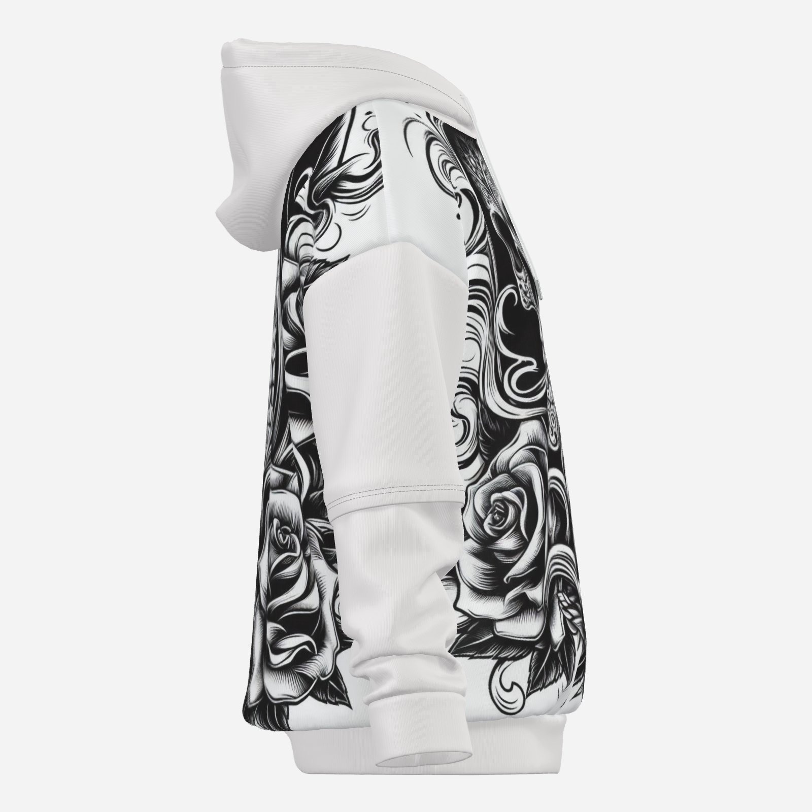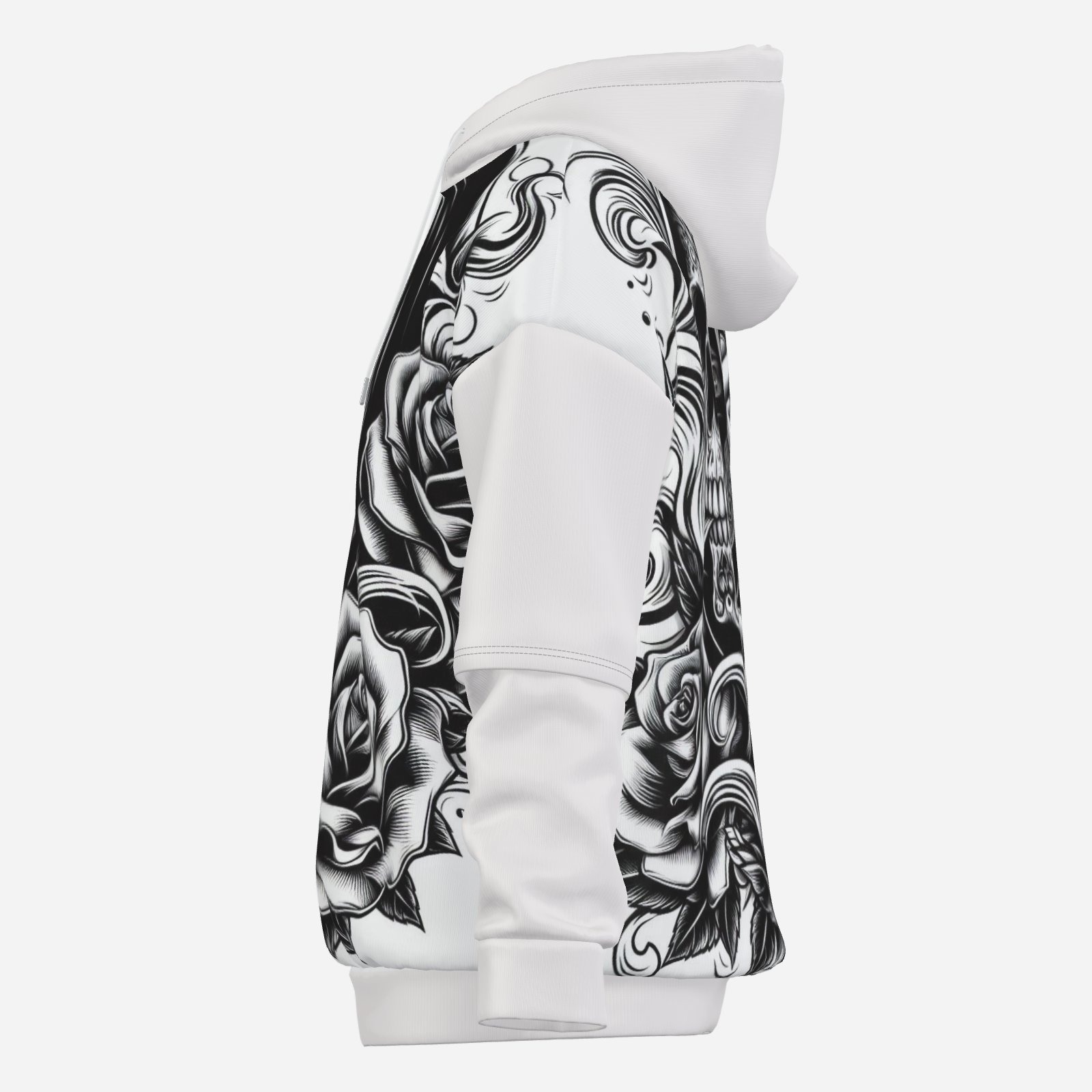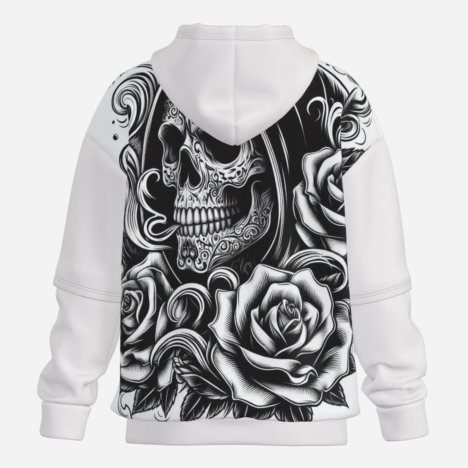 The design features a striking gothic skull tattoo line art that captures the essence of rebellion and individuality. The intricate details of the rose intertwined with the skull create a visually stunning contrast that is sure to turn heads. Whether you're heading to a concert, hanging out with friends, or just want to express your unique style, this hoodie has got you covered.